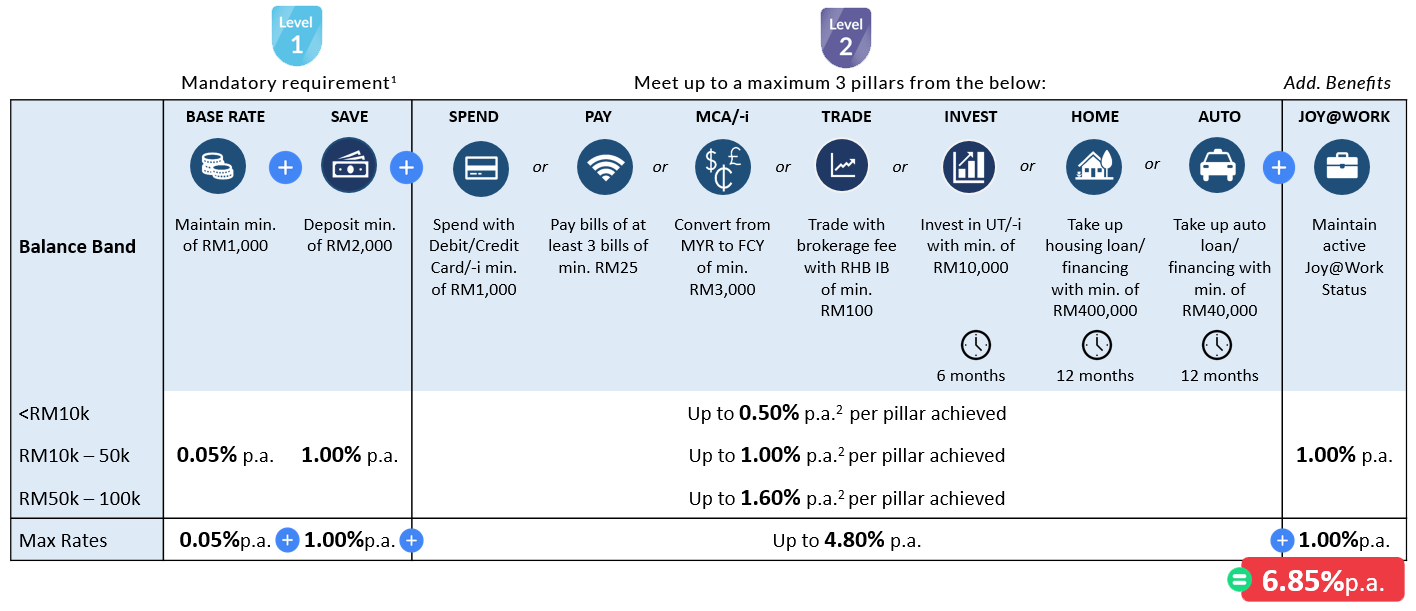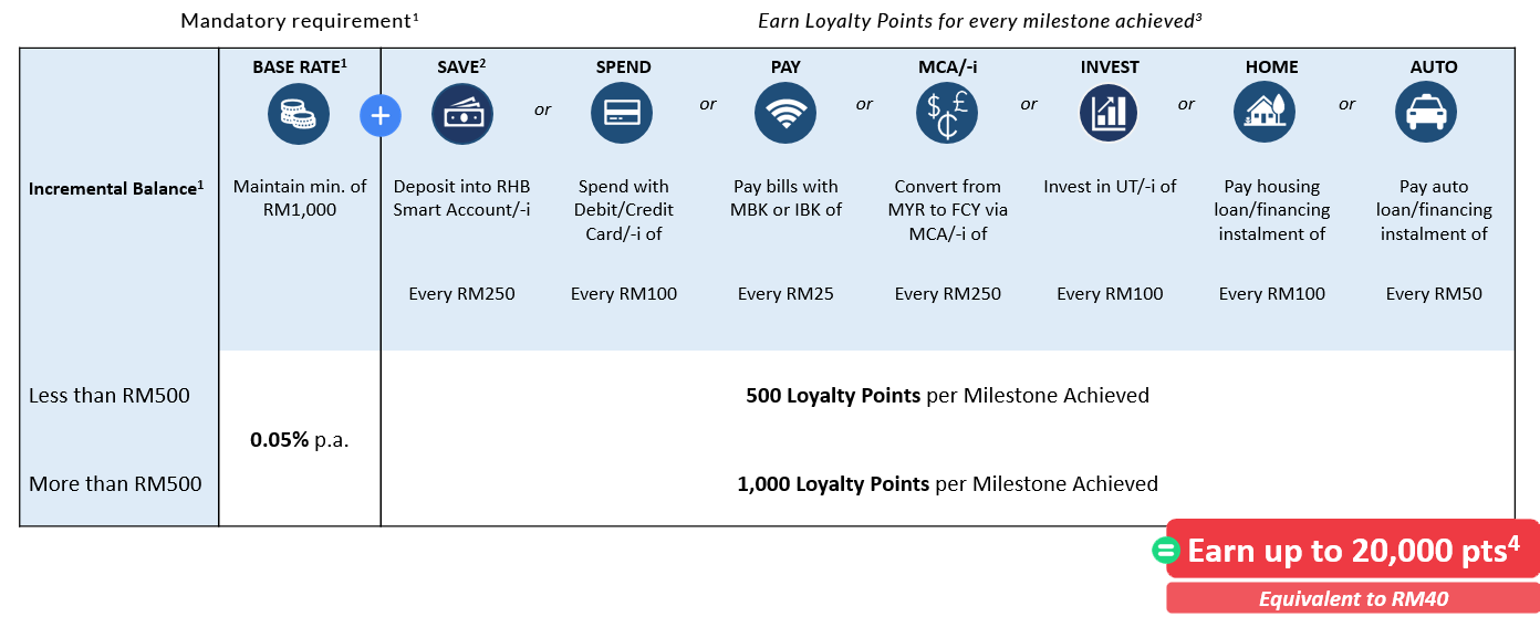 2 Applicable to customers who increased an their balances of more than RM1,000 compared to previous month to entitle for an additional 0.20%p.a.